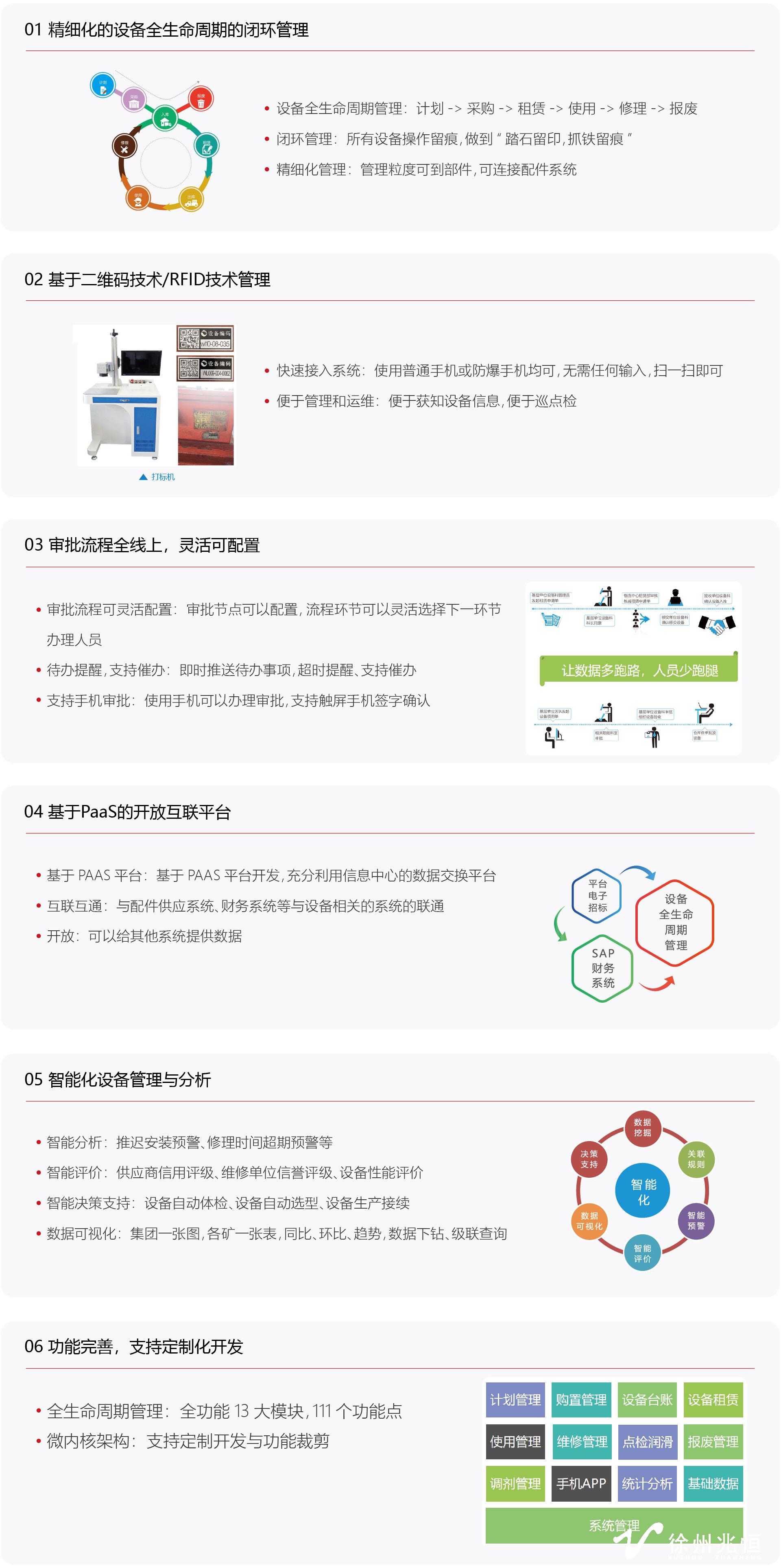 集團公司級設備生命周期管理系統以智能管理數字化平臺為支撐,采用B/S架構,內容涵蓋計劃、采購、合同、出入庫、租賃、維修、點巡檢、報廢、生產接續、調劑等關鍵環節,實現對所有設備進行信息快速識別、采集、記錄、上傳,以及設備的盤點、巡檢、維護信息進行快速的查詢、統計分析等,建立完整、準確的公司資產管理數字化信息的管理系統,提供高效實用的高科技管理手段與方法。